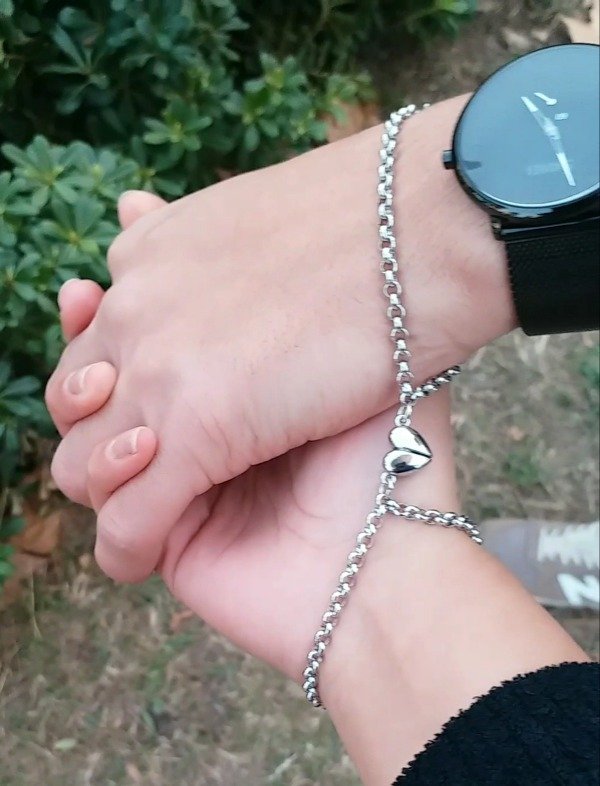 2 pulseras de acero quirurgico con dije iman corazon de niquel