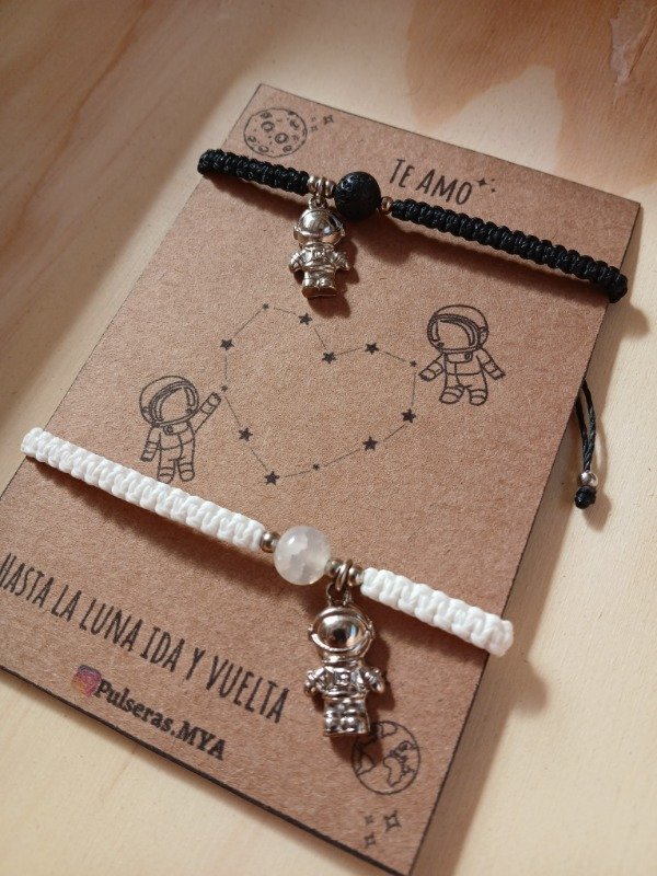 •2 Pulseras de hilo encerado con perlas de vidrio y simil volcánica con dijes de niquel + 1 Tarjeta
